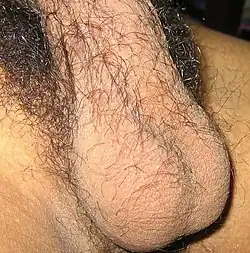 Un testicul este de obicei mai mic decât celălalt, despre care se crede că funcționează pentru a evita compresia în caz de impact; la om, testiculul stâng este mai mic decât cel drept. [2] O perspectivă alternativă este că asimetria descendentă a testiculului evoluat pentru a permite o răcire mai eficientă a testiculelor. [11]