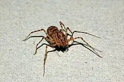 Împerecherea poate avea loc pe parcursul întregului an. Femela depune ouăle într-un cocon. Ponta cu ouă este anexată în partea posterioară a corpului, de organele filiere, cu ajutorul firelor de mătase.