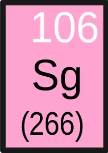 | Nume, Simbol, Număr | Seaborgiu, Sg, 106 | ||||||||||||||||||||||||||||||||||||||||||||||||||||||||||||||||||||||||||||||||||||||||||||||||||||||||||||||||||||||||||||||||||||||||||||||||||||||||||||||