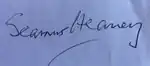 Seamus Heaney (n. 13 aprilie 1939 - d. 30 august 2013) a fost un scriitor irlandez, laureat al Premiului Nobel pentru Literatură în anul 1995. S-a născut în Bellaghy, Irlanda de Nord și a locuit în Sandymount, Dublin din 1972 până la moartea sa.