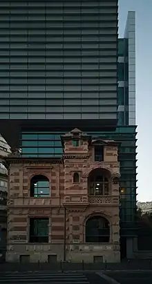 În anul 2003, clădirea a fost ridicată până la etajul 7, într-o notă modernă. Sediul măsurând 28 de metri cu ferestre joase de 2 metri și 60 de centimetri.[3]