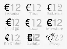 - Connaire 🇪🇺, Vincent ✍🏽 (). „Monitery symbols are used with numerals; all are on a figure width, the same as the zero. EU's euro would not work on a figure width.https://twitter.com/valio_ch/status/923477297763684352 …”. Legătură externa în