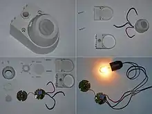 Principiu: senzorul infraroșu reacționează la căldura corpului emisă de oamenii aflați în mișcare. De exemplu lumina se va aprinde când senzorul sesizează mișcare și se va stinge după o anumita perioadă care poate fi pre-setată.