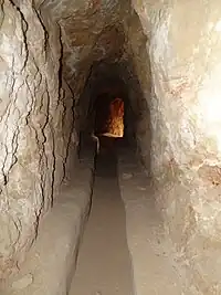 Rezervorul cel mare, zidit în calcar, era lung de 260m, larg de 2-4 metri și înalt de 10 metri. El putea să acumuleze până la 4,300 metri cubi de apă. În unele locuri, rezervorul era prevăzut cu arcade de sprijin. La intrare el avea o cisternă de decantare adâncă de 5 metri. Rezervorul a fost construit în două etape: prima în cursul secolului al II-lea, iar a doua în secolul al IV-lea. El a fost utilizat până în secolul al VII-lea. Din rezervorul cel mare apa se scurgea printr-un tunel denumit „tunelul celor șase puțuri”. Tunelul era lung de 235 metri, înalt de 1-3 metri și lat de 80 centimetri. Panta tunelului pe parcursul traseului său era de jumătate de metru. Tunelul a acționat între secolul al II-lea și secolul al VII-lea și conținea șase puțuri, construite în diagonală dinspre suprafață în interiorul tunelului. Ele au slujit săpătorilor antici pentru a pătrunde în tunel și a săpa în interiorul lui. Fiecare segment al tunelului a fost săpat de două grupuri de săpători, care s-au scoborât prin puțuri, unii săpând la dreapta, iar alții la stânga, până ce s-au întâlnit la mijlocul segmentului. În interiorul tunelului a fost creat un canal tencuit înalt de 40 centimetri și lat de 30 centimetri. Tunelul a fost construit cu târnăcoape. Pe peretele tunelului au fost săpate nișe pentru lumânări de ulei.