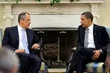 Serghei Victorovici Lavrov (în rusă Серге́й Ви́кторович Лавро́в; n. 21 martie 1950, Moscova) este un diplomat rus, Ministru al Afacerilor Externe al Rusiei începând cu 2004.[3] Înainte de aceasta, Lavrov a fost un diplomat sovietic și ambasadorul Rusiei la Organizația Națiunilor Unite între 1994–2004. Lavrov vorbește rusă, engleză, franceză și singaleză.[4] Tatăl său este armean din Tbilisi.[5][6] Fost membru PCUS.