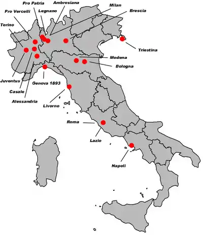 | Acasă \ Deplasare[1] | Alessandria | Ambrosiana | Bologna | Brescia | Casale | Genova 1893 | Juventus | Lazio | Legnano | Livorno | Milan | Modena | Napoli | Pro Patria | Pro Vercelli | Roma | Torino | Triestina |