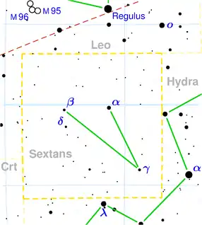 ![]() Harta constelației Sextantul (click pentru mărire) | |