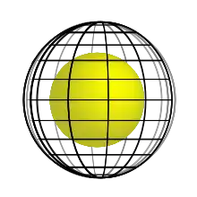 În imagine, proiecție ortogonală în 2D a proiecției stereografice în 3D.