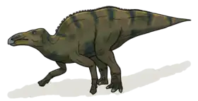 Craniul de 1,6 m se termina cu un cioc fără dinți, iar maxilarele erau dotate cu 1.500 de dinți minusculi. Femurul avea o lungime de 1,7 m.