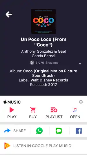 ![]() Скрыншот праграмы «Shazam» на «iOS». | |