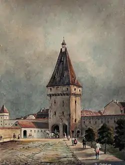 Primăria, Biserica evanghelică (doar vârful turnului), Biserica catolică