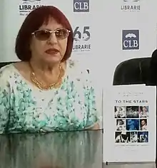 ![]() Silvia Constantinescu la lansarea cătții sale TO THE STARS, 2016. | |