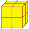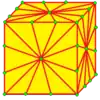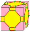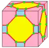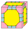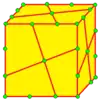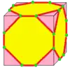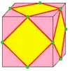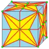 Kis ridică o piramidă pe fiecare față.[11] Trunchierea taie poliedrul la vârfurile sale, dar lasă o porțiune a muchiilor originale.[12] Zip este numit și bitrunchiere. | |