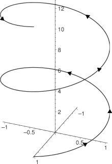 Simetria elicoidală este tipul de simetrie văzut în obiecte ca arcuri sau burghie. Conceptul de simetrie elicoidală poate fi văzut ca traiectoria în spațiul tridimensional a unui obiect rotit cu viteză unghiulară constantă, în timp ce este translat cu o viteză liniară constantă de-a lungul axei sale de rotație. În orice moment, aceste două mișcări se compun pentru a da un „unghi de înfășurare” care ajută la definirea proprietăților elicei trasate.[27] Când obiectul în discuție se rotește rapid și se translează încet, unghiul de înfășurare va fi aproape de 0°. În schimb, dacă obiectul se rotește încet și se translează rapid, unghiul de înfășurare se va apropia de 90°.