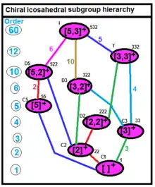 ![]() Simetrie icosaedrică Ih, (*532) [5,3] = | |