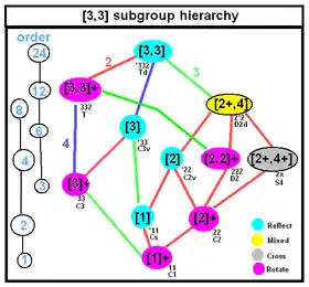 ![]() Simetrie tetraedrică Td, (*332) [3,3] = |