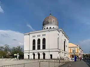 În anul 1870, în contextul sciziunii iudaismului maghiar, comunitatea evreiască din Oradea s-a împărțit într-o comunitate ortodoxă și în cea neologă. Comunitatea evreiască neologă a construit pe malul Crișului o sinagogă monumentală, după planurile inginerului șef al orașului, David Busch, și sub coordonarea inginerului Kálmán Rimanóczy Senior. Piatra de temelie a sinagogii a fost pusă la 9 aprilie 1877, iar lucrările de construcții au fost finalizate la 24 septembrie 1878.[2]