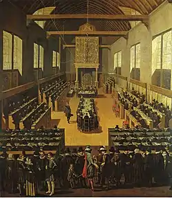 - din Franța: nici unul, deoarece guvernul francez le interzisese participarea. În onoarea hughenoților absenți a fost așezat un rând de scaune libere.