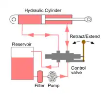 Acționarea hidraulică este o tehnologie care utilizează lichide pentru a transmite forță de la o sursă de energie (cum ar fi o pompă hidraulică(d)) către un dispozitiv de lucru (cum ar fi un cilindru hidraulic) pentru a realiza o mișcare mecanică. Sistemul hidraulic este format dintr-o serie de componente, cum ar fi conducte, furtune, supape, filtre, acumulatori și cilindri hidraulici, care sunt proiectate pentru a lucra împreună și a controla fluidul hidraulic într-un mod specific. Când un lichid hidraulic este pompat printr-un sistem, el poate genera o forță ridicată, fiind capabil să ridice sau să miște obiecte mari și grele cu ușurință. De aceea, acționarea hidraulică este adesea utilizată în mașini și echipamente industriale, cum ar fi macarale, excavatoare, prese hidraulice și mașini unelte.