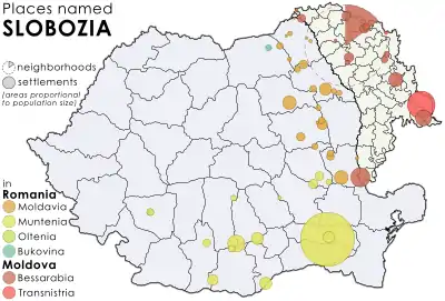 Harta localităților numite „Slobozia”