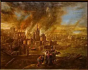 Îngerii i-au luat pe Lot și pe soția sa și cele două fiice ale sale și au plecat din Sodoma, care începuse a fi acoperită de o ploaie de pucioasă și foc din cer. Femeia lui Lot, care a privit în urmă împotriva sfatului îngerilor, a fost prefăcută într-un stâlp de sare (Facerea 19:1-26).