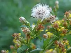 Florile sunt galbene, grupate în calatidii, cele marginale fiind alungit-liniare, sunt de culoare galben-albicioase din cauza periilor caliciului.