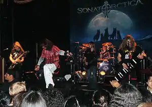 ![]() Sonata Arctica performing live in Santa Ana, California in 2007. Left to right: Viljanen, Kakko, Paasikoski, Portimo, Klingenberg. | |