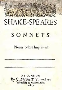 ![]() Titlul paginii ediției din 1609 a Sonetelor lui Shakespeare | |
