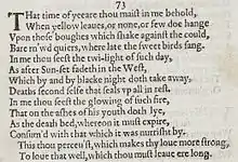 | That time of year thou mayst in me behold When yellow leaves, or none, or few, do hang |