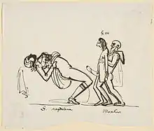 Faimoasa caricatură cu Sophia Magdalena, Gustav III și Adolf Fredrik Munck.