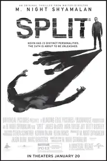 Split este un film american psihologic, horror, thriller din 2016, scris și regizat de M. Night Shyamalan.[3] Filmul îi are în rolurile principale pe James McAvoy, Anya Taylor-Joy și Betty Buckley și spune povestea unui bărbat cu 23 de personalități diferite, care răpește și sechestrează trei fete adolescente într-un loc subteran izolat.