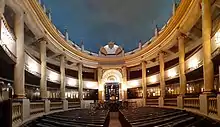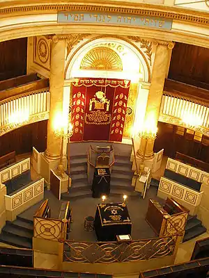 Sinagoga are forma unui oval. Un inel de douăsprezece coloane ionice susține o galerie pentru femei pe două niveluri. Inițial, galeriile se terminau la o coloană distanță de Arca Sfântă, dar ele au fost extinse ulterior la coloanele de lângă arcă pentru a oferi mai multe locuri. Clădirea are o cupolă și este luminată de un felinar aflat în centrul cupolei, într-un stil clasic Biedermeier.[6]