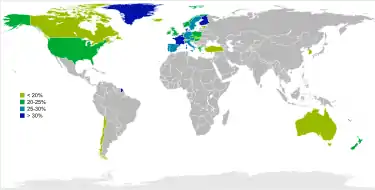 | Țară | Rata absolută a sărăciei (1960–1991) (prag stabilit la 40% din venitul mediu al gospodăriilor din SUA)[11] |