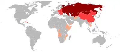 În majoritatea cazurilor, statele socialiste urmează regimuri politice de tip dictatorial, iar în unele cazuri (precum cel al URSS), totalitare. Caracterul totalitar a fost o constantă a statelor comunsite de-a lungul existenței lor. Alte asemănări între statele comuniste sunt vizibile la nivelul constituțiilor, al legislației, sau în programele politice alte partidelor comuniste.[2] Acest ultim fapt poate fi explicat de contextul răspândirii comunismului ca regim politic în Blocul Răsăritean sau în alte state satelit ale Uniunii Sovietice.