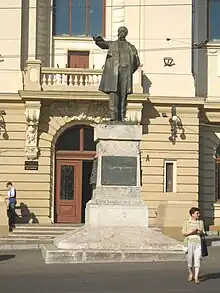 Statuia lui Mihail Kogălniceanu și Universitatea „Al. I. Cuza” din Iași.