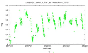 Curba de lumină a stelei variabile semiregulate Betelgeuse