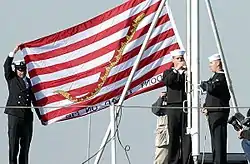 Steagul de provă al Statelor Unite ridicat la prova USS Kitty Hawk în 23 decembrie 2011