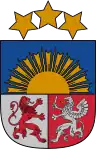 Cele trei stele aurii de deasupra scutului reprezintă cele trei regiuni istorice ale Letoniei: Vidzeme (Livonia suedeză), Latgale (Latgalia sau Livonia poloneză) și Curlanda (Curlanda, de asemenea Zemgale (Semigalia) ca Ducatul Curlandei și Semigaliei) și unitatea lor[3].