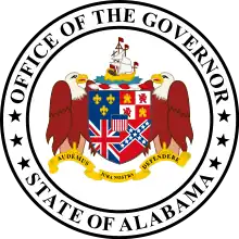 Stema statului Alabama este reprezentată de un scut, ținut de doi vulturi, pe care se găsesc simbolurile celor cinci națiuni care de-a lungul timpului au deținut suveranitatea unei părți sau a întregului teritoriu a ceea ce azi reprezintă statul Alabama.