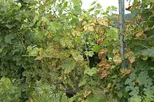 Esca (apoplexia viței de vie) este provocată de numeroase ciuperci, însă cea mai frecventă este brânca, dar trebuie adnotat că prim-infestarea are loc prin Fomitiporia mediterranea și Stereum hirsutum este doar succesorul. Este o boală ce afectează grav butucii (trunchiul și coardele), conducând la debilitarea și în final, la uscarea acestora. Atacul acestui agent patogen blochează în particular xilemul (țesut alcătuit din vase lemnoase, prin care circulă seva brută), diminuând/blocând astfel accesul plantei la apă și nutrienți absorbiți din sol. Infecția are loc adesea prin rănile rezultate în urma tăierilor, astfel plantele pot fi infectate până la 4 luni de la tăiere. Plantele predispuse la infectarea cu ciupercile ce provoacă esca sunt: plante bătrâne de peste 10 ani, aflate în declin, stresate ce au trecut de exemplu prin perioade lungi de secetă sau slabă aprovizionare cu elemente nutritive. Dar, de asemenea, soluri grele cu drenaj deficitar, plantarea viței de vie în sol ce nu a fost desfundat sau scarificat precum plantarea în gropi necorespunzătoare pot provoca infestarea. Mai departe predispuse la apariția ei sunt și plantele altoite cu altoi preluați de la plante mamă infectate.