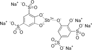 - Antimony(3+) sodium 4,5-dioxido-1,3-benzenedisulfonate (1:5:2) (în engleză), ChemSpider, accesat în