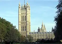Turnul Victoria al Palatului Westminster, Londra: detaliile neogotice au fost create de A.W.N. Pugin