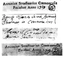 În timp ce doar aproximativ 650 de instrumente originale Stradivari (harpe, chitare, viole, violoncele, viori) există, mii de viori au fost făcute în tributul lui Stradivari, copiind modelul său și purtând etichete care citează „Stradivarius” pe ele. Prezența unei etichete Stradivarius nu confirmă faptul că instrumentul este o lucrare autentică a Stradivari. [69]