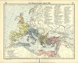 - William R. Shepherd (). „The Roman Empire about 395”. Historical Atlas. New York: Henry Holt and Company. pp. 42–43. Accesat în .