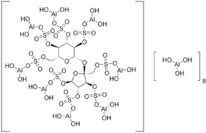 - Aluminium hydroxide (2R,3S,4S,5R)-5-[(sulfonatooxy)methyl]-5-({(2S,3R,4S,5R,6R)-3,4,5-tris(sulfonatooxy)-6-[(sulfonatooxy)methyl]tetrahydro-2H-pyran-2-yl}oxy)tetrahydrofuran-2,3,4-triyl trisulfate (8: (în engleză), ChemSpider, accesat în