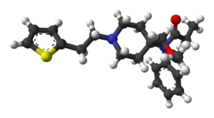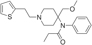| InChI | InChI=InChI=1S/C22H30N2O2S/c1-3-21(25)24(19-8-5-4-6-9-19)22(18-26-2)12-15-23(16-13-22)14-11-20-10-7-17-27-20/h4-10,17H,3,11-16,18H2,1-2H3[3] |