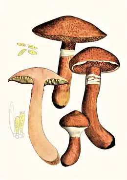 - Giacomo Bresadola: „Iconographia Mycologica, vol. XIX, Editura Società Botanica Italiana, Milano 1931, p. + tab. 912