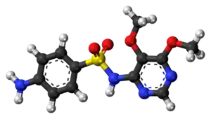 Sulfadoxina este un antibiotic din clasa sulfamidelor cu durată foarte lungă de acțiune care este utilizat în trecut în tratamentul unor infecții bacteriene, precum: infecții de tract urinar, infecții de tract respirator, dar și în malarie (în combinație cu pirimetamina).[9][10]