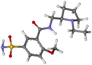 Sulpirida este un antipsihotic atipic derivat de benzamidă, fiind utilizat în tratamentul schizofreniei și al psihozelor.[10][11][12] Mai este utilizat și în tratamentul anxietății.[13] Căile de administrare disponibile sunt orală și intramusculară.[10] Este un antagonist dopaminergic al receptorilor D2.[11]