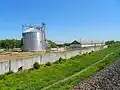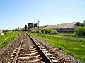 GARA FEROVIARĂ(înc. sec. XX), toată din cărămidă arsă, cu două fețe și mai multe feluri de ornamente reliefate și mozaicale, împreună cu cele 3 case locative din preajmă(din piatră, granit și cărămidă), și cele auxiliare vechi - 3 mici, în parcul mic al gării și rămășițele depozitelor subterane, alcătuiește un întreg complex arhitectural. În perioada Regatului Român toate construcțiile feroviare, și chiar gara, pe jumate, erau "cazarme" ale ostașilor sau jandarmilor.